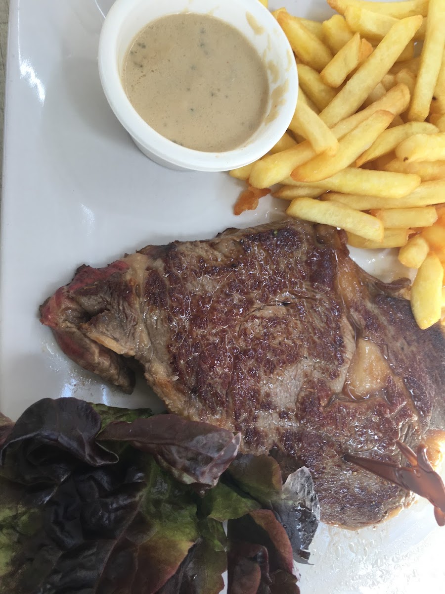As you step inside or settle at one of the outdoor tables overlooking the picturesque square next to the Cathedral, you're embraced by a friendly ambiance that is echoed in the smiles of the staff. The culinary offerings here are equally delightful, with a menu that showcases the best of French cuisine. Among the standout dishes is the celebrated steak poivre, famed for its rich, peppery flavor that tantalizes the taste buds. For those seeking a taste of local culture, the chicken dish enveloped in creamy Brie de Meaux cheese is a must-try, perfectly showcasing the region's renowned dairy. Don't miss the chance to indulge in one of the generously portioned salads, hailed by diners as 'the biggest ever,' providing a delightful crunch and freshness that complements any main course.